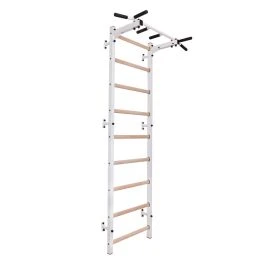 High-quality wall bars measuring 67 x 240 cm with metal profiles and 9 oval beech wood rungs (30 x 40 mm). The wall bars comply with EN 913 and EN 12346 standards and must be mounted on the wall. Great sports equipment and also ideal for home use. With permanently attached pull-up bar made of metal.