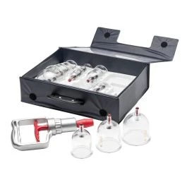 Cupping can be applied in many different variations. The cupping glass made of plastic is suitable for normal, dry cupping. In this case, the cupping glass is placed on the corresponding skin site and a vacuum is produced with the supplied pump. Alternatively, cupping heads with a suction ball are used. We recommend the cupping glasses made of glass for flushing or blushing.