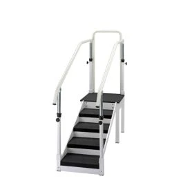 Mainly used in therapy and rehab for personalised practice. The steps are coated with a non-slip rubber. Step LxBxH: 60x60x13 cm. Dimensions LxBxH: 182x65x70-97 cm.