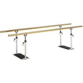 The parallel bars are available with opened and closed floor. The version with opened floor can easily be combined with training aids.