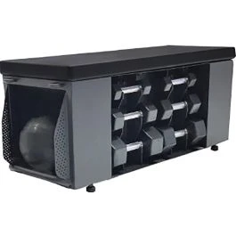 The training bench offers all sorts of options for functional training and also storage space for equipment.