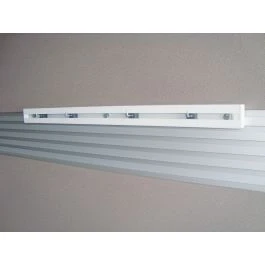 The foil strip is equipped with hooks, which can be adjusted. By simply moving the hooks, they can be adapted to the holes of the blanks. The block strip is made of robust steel material and coated in white. Fits in color to the usual wall paints.