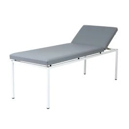 Examination and rest areas are suitable for public institutions, sports clubs, schools, gymnasiums, sports halls and in practices as a fixed therapy couch. In a treatment room or sanitary room, the relaxation room couch can also be used ideally as a massage table or treatment bench. Product features Massage table: The sturdy frame consists of a tubular steel square profile and is white powder coated. The sunbed can be loaded up to 170 kg body weight. The headboard can be adjusted positively by means of a grid in stages.