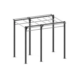 Weatherproof outdoor fitness rig in the PLUS version consisting of six main columns, four connecting double pull-up bars and seven crossbars.