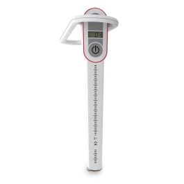 The body height meter is specially designed for sport medicines and hospitals. Its features are not only characterised by simple stylish design, it also comes with an integrated automatic electronic spirit level. This allows free measurement in space and ensures extremely high measurement precision and speed at all times. Another advantage of the height rod is its unique folding function. When folded it requires very little space and is easy to stow away.