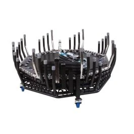 Transport and storage trolley made of steel, black powder-coated. With abrasion-resistant rollers. Holds up to 25 original World Jumping® trampoline Spider Premium.